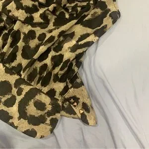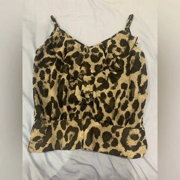 Monteau Leopard Print Ruffle Mesh Cami Top