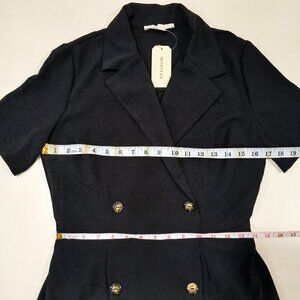 Monteau Los Angeles Black Cross Front Double-Breasted ShortSleeve Button Dress L