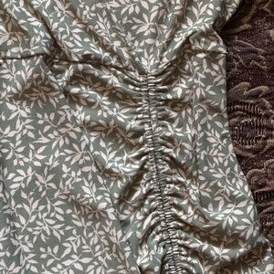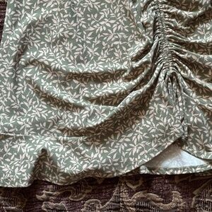 Monteau Los Angeles Midi Above Knee Olive & Cream Leaf Print Ruched Dress