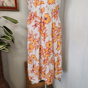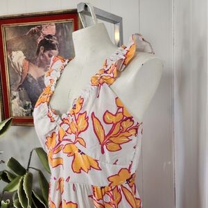 Monteau Los Angeles Orange Floral Tiered Ruffle Midi Dress Womens Size Medium
