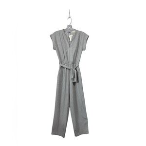 Monteau Los Angeles, V-Neck Striped Jumpsuit With Waist Tie, Small, White, Grey