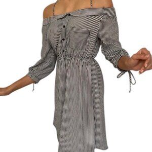 Monteau Los Angeles black and white striped off shoulder dress size S
