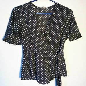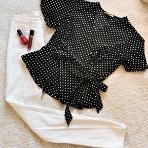 The polka dot shirt is very versatile that it can be either by wore as part of a causal outfit or a work outfit !