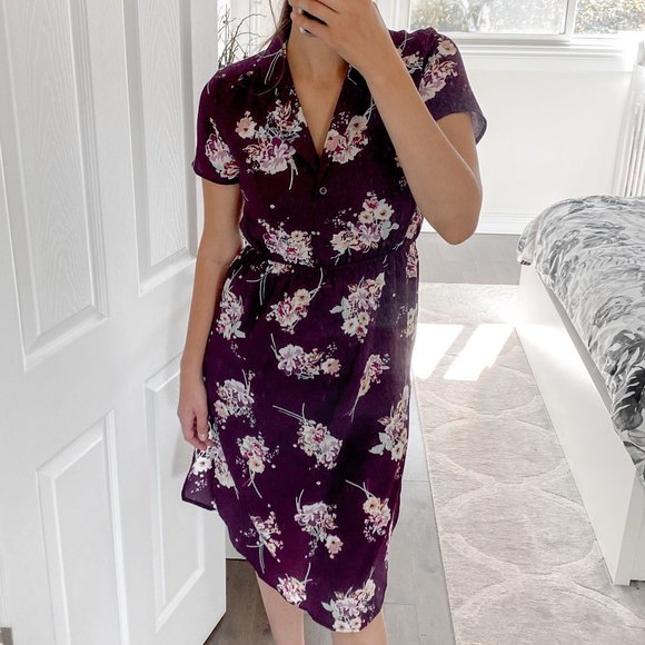 Beautiful feminine dress in gorgeous royal purple color with small floral print. The ankle-high length makes it perfect for special occasions and/or will add a little fun to your workday. A great dress to throw on when you have "nothing to wear" in the morning.