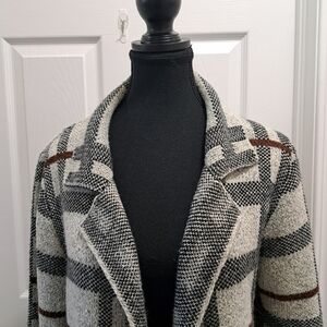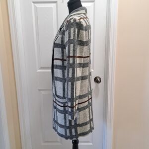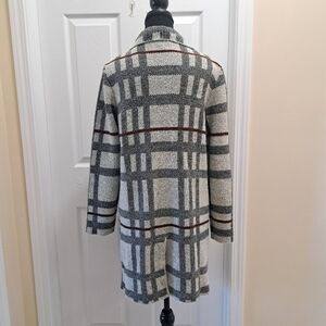 Monteau Sweater Coat Plaid Women's Size Large Grey Brown Cozy Fall Classic