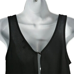 Monteau Swing Back Closure Fringe Semi-Sheer Crocheted Lace Black Top Blouse S