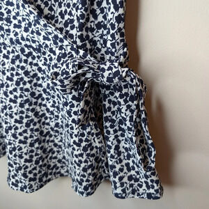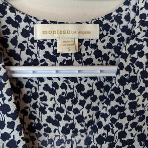 Embrace the classy vibes with this stylish navy and white patterned blouse from Monteau (size Small)!