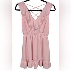 Monteau pink chiffon mini dress, Med, ruffles, sleeveless, pretty, feminine