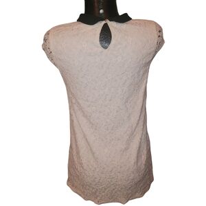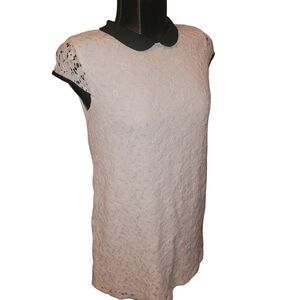 Monteau white lace overlay mini dress with black collar Sz.M