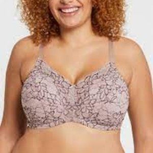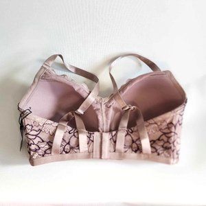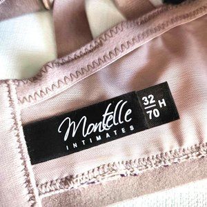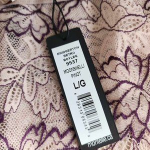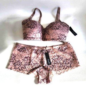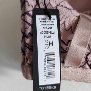 Matching set of Montelle Bridget Wire-Free Dream Bra in US size 32H & Bridget Retro Boyleg brief panty in size L, both in Moonshell Pinot lace