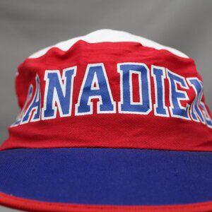 Up for sale is a great vintage Montreal Canadiens hat. This is a painter's cap done by Ted Flectcher. The hat has a whole lot going on. The top of the hat features the classic Canadiens logo. Each side of the hat has Montreal screened on. The front of the Hat states Canadiens. The entire hat is done in a montage of Montreal Canadiens colours. If you are a collector of Canadiens memorabilia. This is an absolute must have.