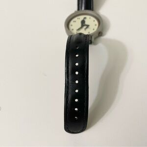 This watch is pre-owned and in used condition. It will require batteries. The band has creases and wear to it. And the face has scratches and marks on it. Please see all photos for exact item.