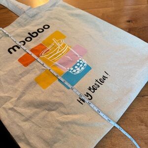 Stylish Mooboo tote bag featuring a colorful design. Perfect for casual outings.