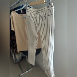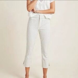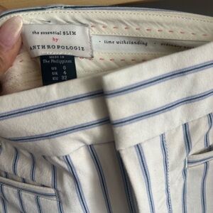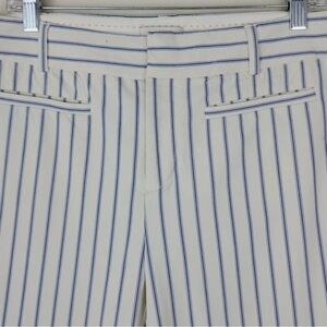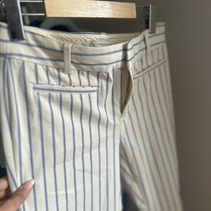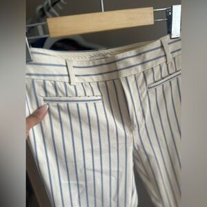 Cream With Blue Striped Cropped Pants. Has 2 Pockets On Front And Back.