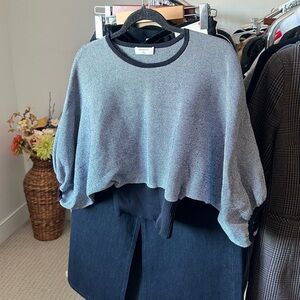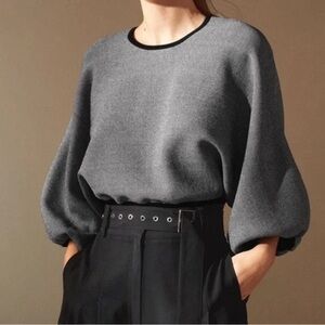 Stylish gray top with balloon sleeves. Perfect for a modern look. Comfortable and elegant.