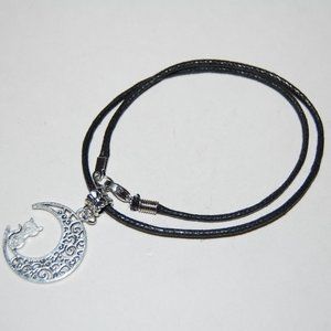 Moon Cat Necklace,Moon Chocker Necklace,Moon and Cat Choker Necklace,Man,Woman,Cord Necklace,Good Luck,Lobster Lock End Cord
