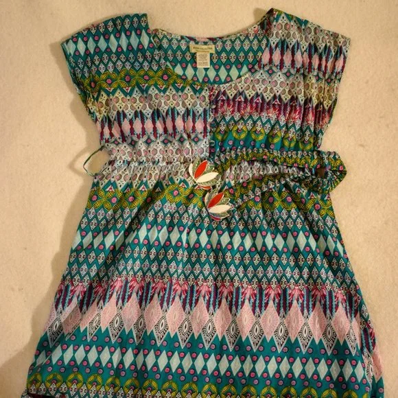 Mini dress from 'Moon Collection'. "Live in California". Super cute little thing with gorgeous details: buckle, a few inches of crinoline in the lining. Waist is slightly elastic. Your legs will probably look 1,000 miles long.