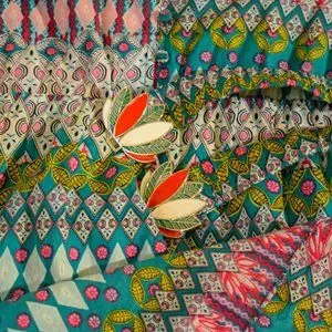 100 % cotton. Made in China, but the designer seems to be based in LA.