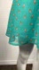 Chic teal midi dress featuring gold patterns. Ideal for versatile styling. Comfortable and trendy.