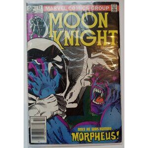 "Moon Knight #12 (1981) features the first appearance of Morpheus in this vintage Marvel comic book comes with boarded and dust jacket features. Written and illustrated by Doug Moench, this color comic from the Bronze Age era is a must-have for any Moon Knight fan. The newsstand variant with English language text is suitable for general audience collectors looking to add a piece of Marvel (MCU) history to their collection."
