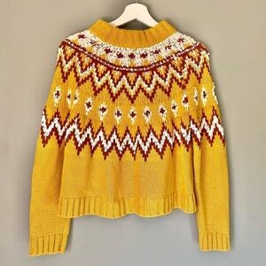 Moon & Madison Retro Yellow Brown Chevron Knit Sweater