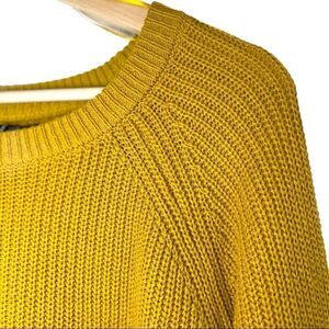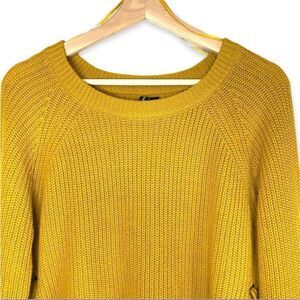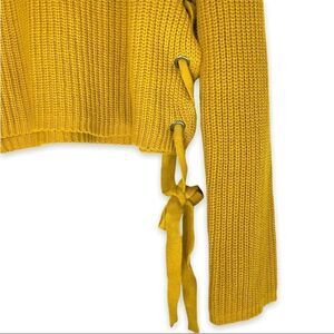 This is a Moon & Madison Ribbed Side Tie Round Neck Mustard Sweater