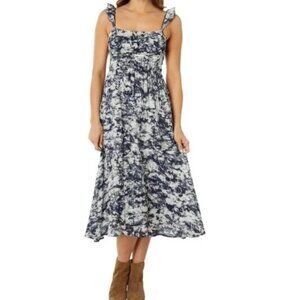 Moon River Blue and White Printed Ruffle Sleeve Maxi Dress Size L