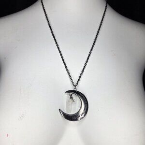 Moon pendant chain necklace with morganite gemstone accent - handmade
