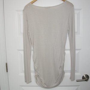 Moonbeam beige long sleeved shirt - rauched sides - boat neck - L - 19" pit to pit, 29" shoulder to hem - 100% mondial - machine was, tumble dry - new, never worn