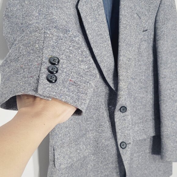Moores Vintage Gray Blue Tweed Wool Silk Blend Donegal Notched Scotland Granpa Blazer Professional Button Front Blazer Size 42