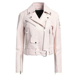 Moose Knuckles Biker Jackets Lamb Leather Rose Water Size L