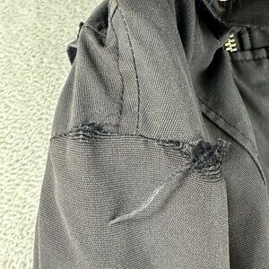 The jacket has some distressing and signs of wear, but all flaws are visible in the pictures. Please review the images closely to understand the condition.