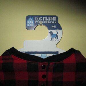 Red Plaid Dog Pajama with Moose image. Fits medium breed dogs such as beagles and cocker spaniels. Chest circumference 19"-24". Back length 14"-18". 100% cotton. Made in India. Little Blue House by Hatley.