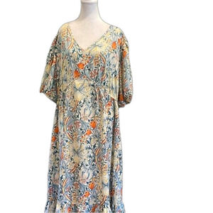 Moosta 4X maxi floral V neck dress with elastic side gathered waist