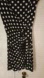 Elegant asymmetrical dress with bold white polka dots on a black background. Perfect for a stylish look