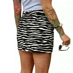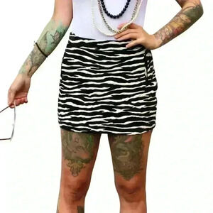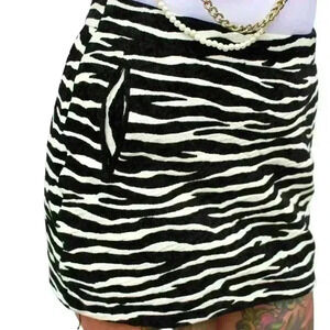 Morgan de Toi Zebra Mini Skirt, S, Faux Wool Boho Y2K Sexy Goth Festival Style