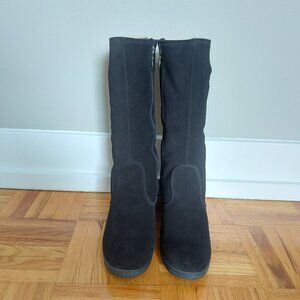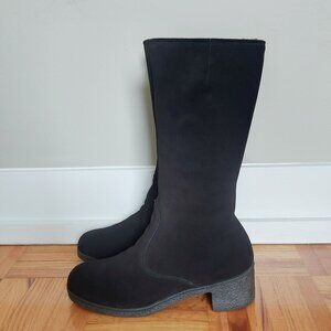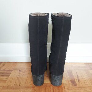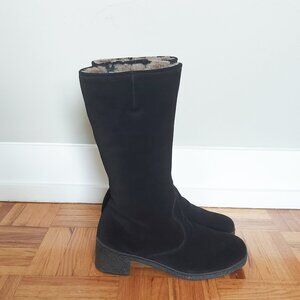 Morlands Women Sheepskin Boots Size 8.5 Black Suede Shearling Mid-Calf Block Heel