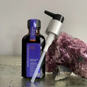 Moroccanoil Treatment Purple Hair Oil for Blonde Hair 50mls Sold by a licensed professional Fast shipping 📦 Recycled shipping materials used when possible ♻️ Bundle discounts- buy two items and save 10%💵 Moroccanoil Treatment like you’ve never seen it before! Experience the haircare benefits you love, crafted with violet pigments to enhance cool tones and neturilize brassiness for your perfect color! Moroccanoil Treatment is the hair care product that put argan oil on the map and created the worldwide buzz on oil-infused hair care. Original Moroccanoil Treatment contains a blend of antioxidant-rich argan oil, and vitamins to create brilliant, soft, shiny hair. An essential foundation for hairstyling, Moroccanoil Treatment can be used on damp hair to condition, nourish and detangle, or on dry hair to reduce frizz, finish, and add shine. Benefits of Moroccanoil Purple Treatment: Reduces brassiness in hair Essential for blonde, lightened, or grey hair routines Adds softness and shine Balanced, non-greasy formula Restores dull hair with antioxidant-rich argan oil & vitamin blend Reduces frizz and adds smoothness, while conditioning split ends How To Use Moroccanoil Purple Treatment: Apply 1-2 pumps of Moroccanoil Purple Treatment to clean, towel-dried hair Apply from mid-length to ends Let hair dry naturally, or blow dry