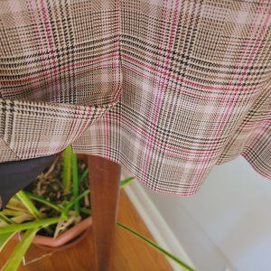 This gorgeous double-breasted blazer from Danish designer Mos Mosh is a great transition piece for spring! It is in excellent pre-loved condition (worn twice) and features gold buttons on the front and sleeves which perfectly offset the dusty pink and tan tones throughout the checked fabric. It also features light shoulder pads to give it structure, a scissored front and notched lapels and it is fully lined. The two front pockets (still sewn shut) are functional and include gold hardware detail. An amazing piece to wear with jeans for a dressy casual look or as part of your office wardrobe. From a smoke free and pet free home.