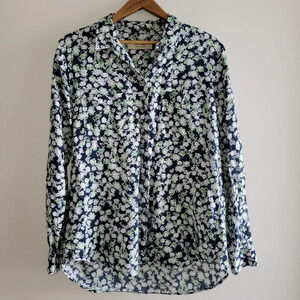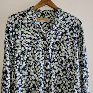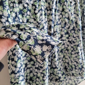 Mos Mosh - Kaia Bloom Linen Shirt- Salute navy and green flower print. Classic collar. Front button closure.