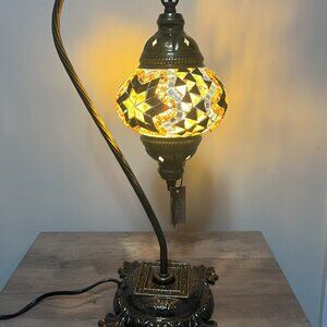 This handmade mosaic table lamp is the perfect addition to any room in your home. The stunning blue glass material and round shade shape create a unique and artistic piece that is both functional and beautiful. Measuring 12 inches in diameter and 32 inches in length, this lamp is powered by a wall plug-in and features a convenient wall switch control. With a voltage of 120V and E27 lighting technology, this lamp is suitable for adults and ideal for use in entryways, garages, bedrooms, living rooms, dens, and dining rooms. The lampshade is included and the bulb shape code is E20. This Turkish-style lamp also features a romantic and advertising theme, making it a great gift for someone special. We offer a unit quantity of 4 and each lamp weighs 25 pounds.
