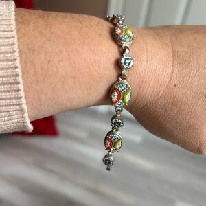 Mosaic tile textile vintage bracelet 7.5 inches ❤️