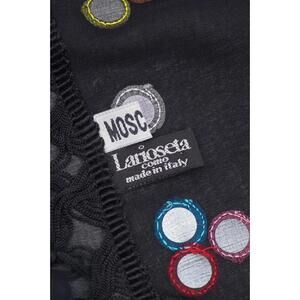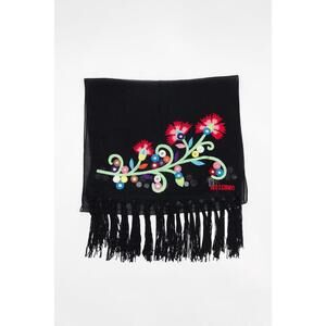 Moschino Black Shear Tassel Scarf Embroidered Flowers