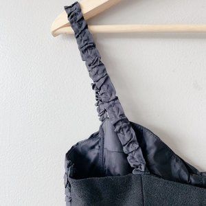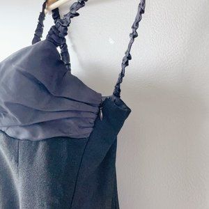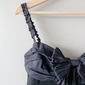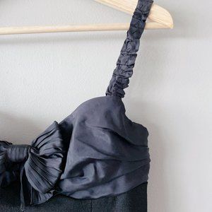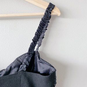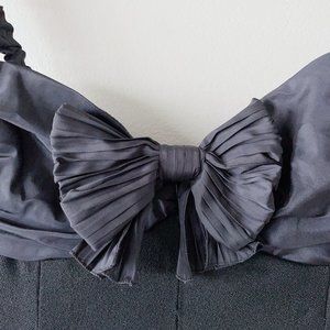 The perfect little black dress! Underwired bustier top with bow and ruched straps. Side zipper closure. Inner black lining. Made in Italy. 100% virgin wool This dress is so beautiful- if it was my size I would definitely be keeping this cocktail dress!
