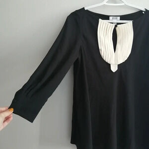 ° Black silk blouse with cream tuxedo style pleated bib collar
