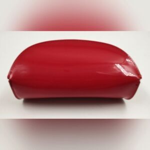 Moschino red patent sunglasses case,written Moschino in black across the front.
