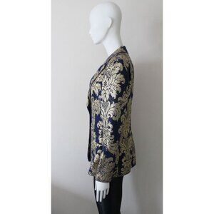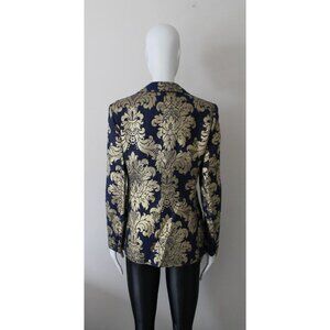 Moschino Jeans 90s Vintage Metallic Notch Collar Blazer Blue Gold Size 10
