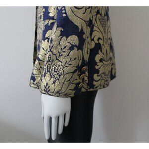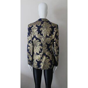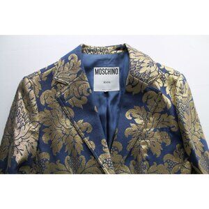 Moschino Jeans 90s Vintage Metallic Notch Collar Blazer Blue Gold Size 10