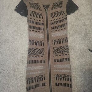 Comfy, lightweight, and perfect for ALL occasions, this sweater dress will be a staple in your closet for years to come. Neutral colours for all seasons, with a fun and playful pattern that makes this dress stand out!