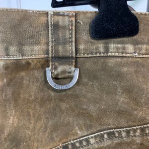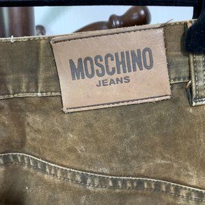 insane dye and small details such as the moschino branding on most hardware and peace sign on back pocket, originally size 38 but previous owner went in w the tailoring and made it either 34 or 36 instead (i just measured but forgot ahah)